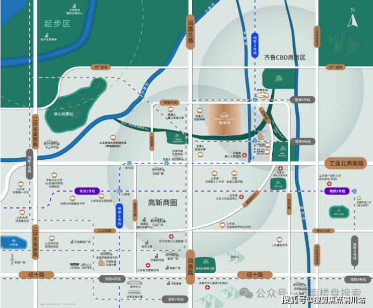 项目靠近工业北路、凤凰路高架等;首开的A1地块距离地铁3号线、6号线的换乘站济南东站约300米。目前,3号一期已经开通,连通北宸龙湖天街、CBD龙湖天街、奥体、龙洞;二期今年年底通车,连通到机场。地铁6号线预计将于2026年年底通车,连通济南东站、CBD、大明湖、火车站、老商埠、会展中心、济南西站等。