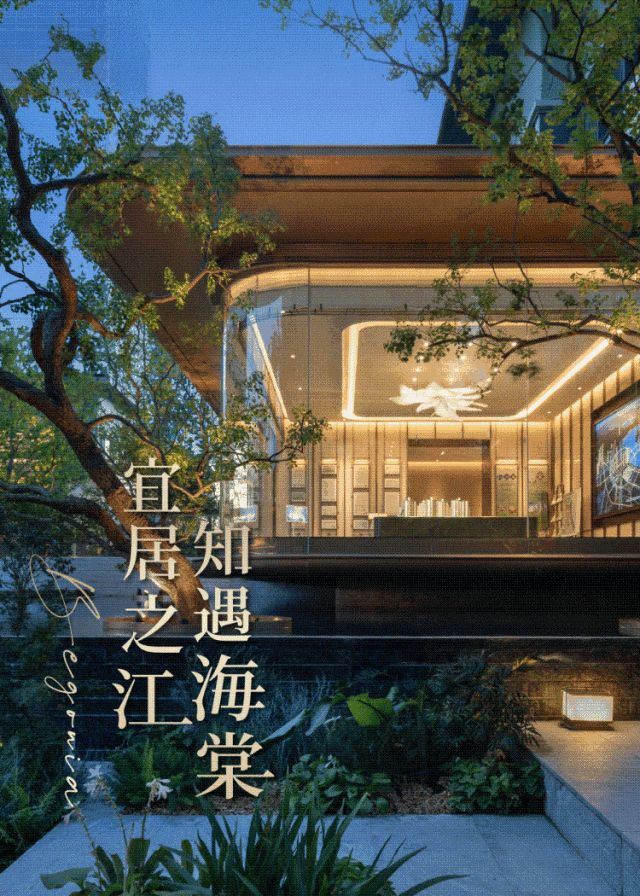 漫步知海棠示范区,从大门入口开始,空间序列徐徐展开,穿过超52米跨度的回字形布局大门,沿着台地住区缓缓而上,“西湖十景”灵感的立体山水之境渐次展开,形成拾级而上、步步生景的沉浸式体验,仿佛置身一座悬浮于空中的绿洲,每一步都是风景,每一眼皆为诗意。