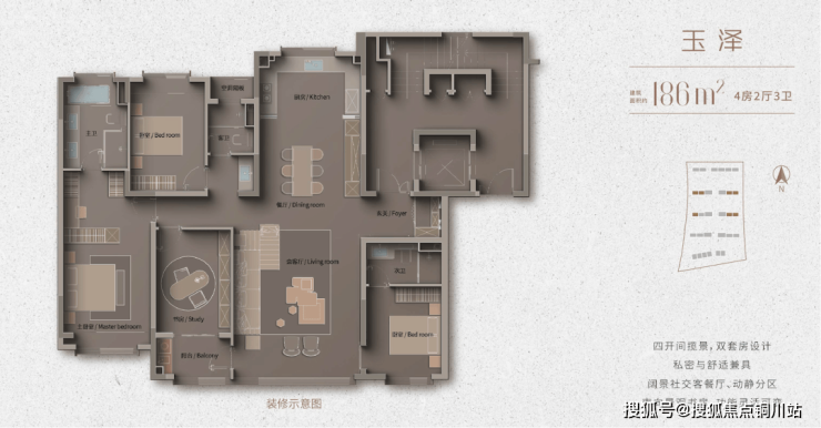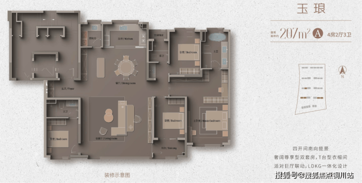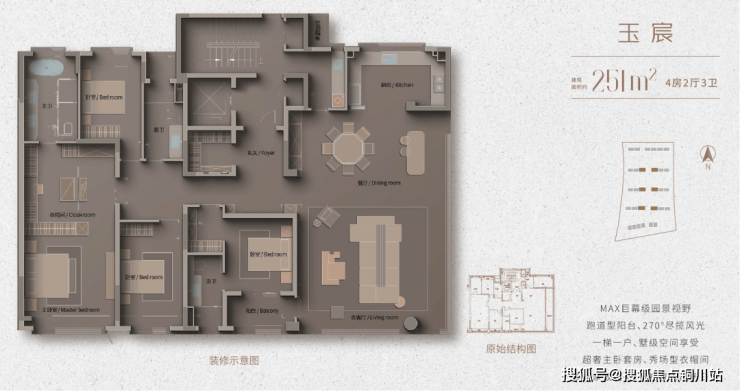 约186㎡户型三卧室朝南、双套房设计;约207㎡户型LDKG一体化,四开间朝南采光极佳;约251㎡户型1梯1户,270°环幕边厅超75㎡,南向开间约7.1米,主卧双台盆带浴缸尽显奢华。