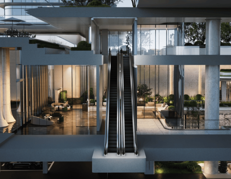 贯穿整个底盘的空中连廊系统,构建起一个可全天候使用的慢行网络。在实现人车分流的同时,也将社区、商业、公园与会所纳入日常动线。漫步万象,高端购物、特色餐饮、艺文体验琳琅满目,恍若走进世界橱窗。超塔办公、超星酒店、高端会所化作商务主场,每一次洽谈都是资本的交互。