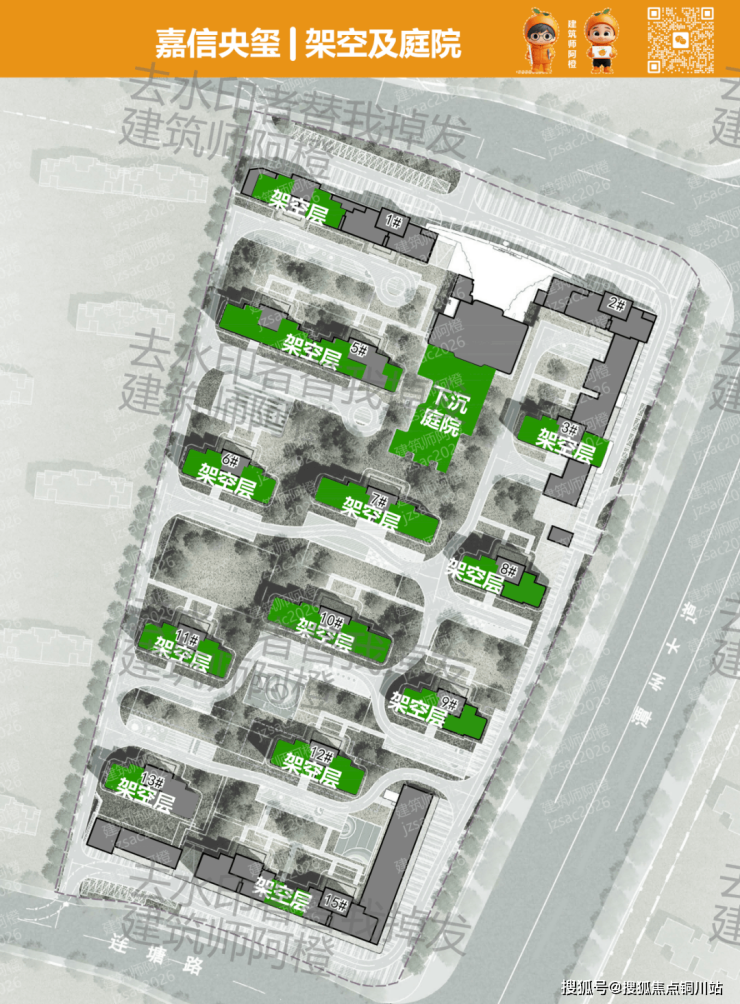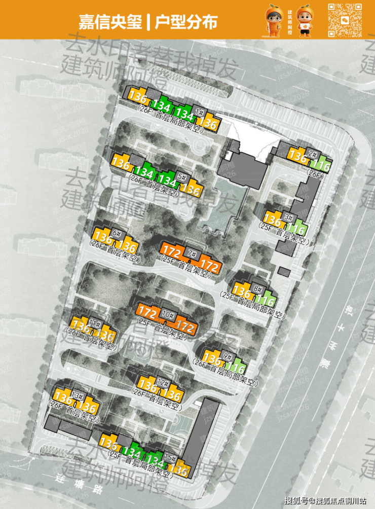 2)这个总图在高架一侧其实摆了5.5排建筑。这也是你看着这个布局在下面这个区域有点乱的主要原因。你说嘉信为什么不摆6排?一是地块进深少了7-8米,二是谁没事到高架旁摆那么多房子干嘛?