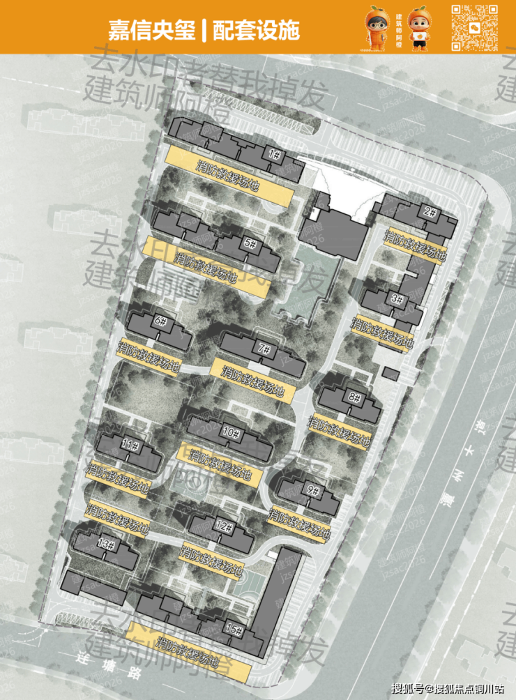 项目北侧因为高差的原因,登高救援场地没有往外部放置。仅有15#的登高救援场地往外设置了。