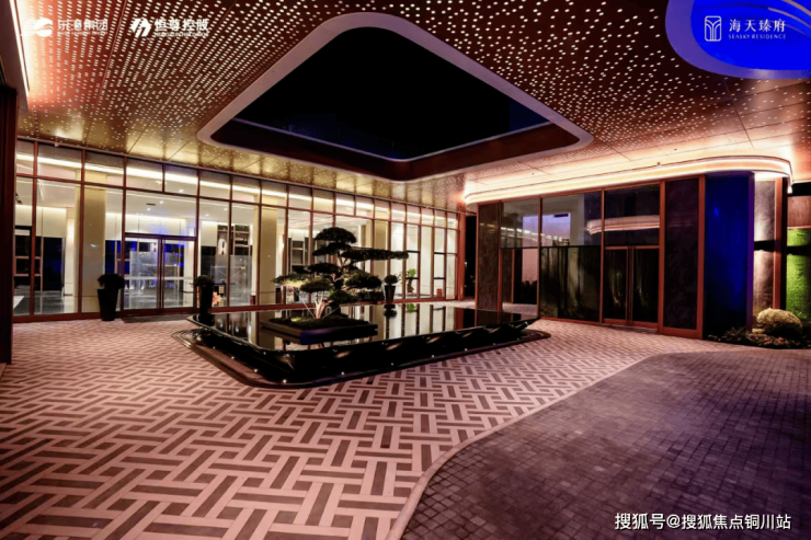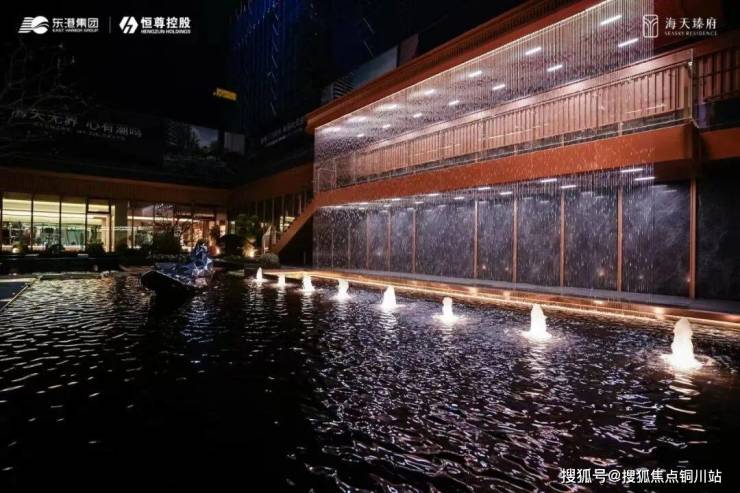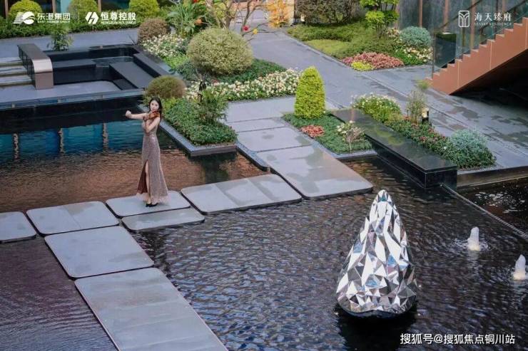 漫步海天臻府下沉式庭院,水幕与喷泉交相辉映,以水波浪涌的激荡,融合静逸丰盛的自然组团造景,营造生活的隐奢意境。