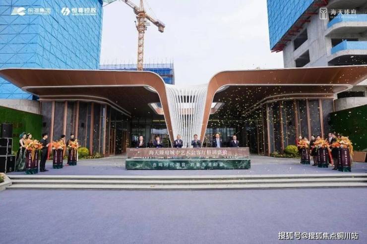 活动当天,科技感十足的机器狗表演与优雅灵动的孔雀舞的轮番登场,瞬间点燃现场鼎沸人气。在现场贵宾的共同见证下,东港集团与恒尊集团的领导嘉宾正式启动海天臻府「城市艺术会客厅」盛放仪式。