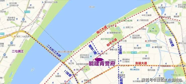 能建·青誉府占位武昌二环滨江,北抵和平大道,南至建港南路,东至建设二路,西至建设一路。离长江江面约1.4公里,属于青山核心区,临近青山滨江。