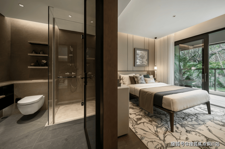 项目还配置南向次卧套房,这样设计的初衷是在追求功能配置的均衡性。譬如,主人、老人、小孩,都有各自生活习惯,独立的卫浴体系互不干涉。而且客厅将两边卧室隔开,就算作息时间不同,也能互不干扰。