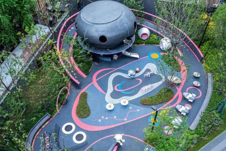 暑气蒸腾的时节,长沙万科松湖天地的园林,是藏在城市里的清凉结界。