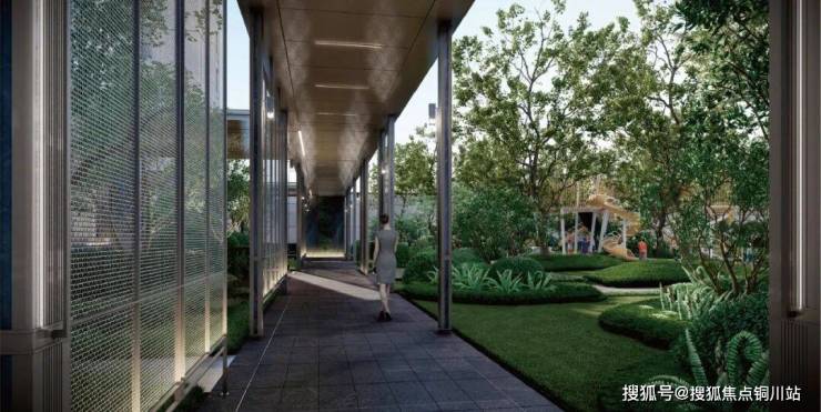 步行归家动线上,所有住宅楼栋通过景观风雨连廊全部连通…