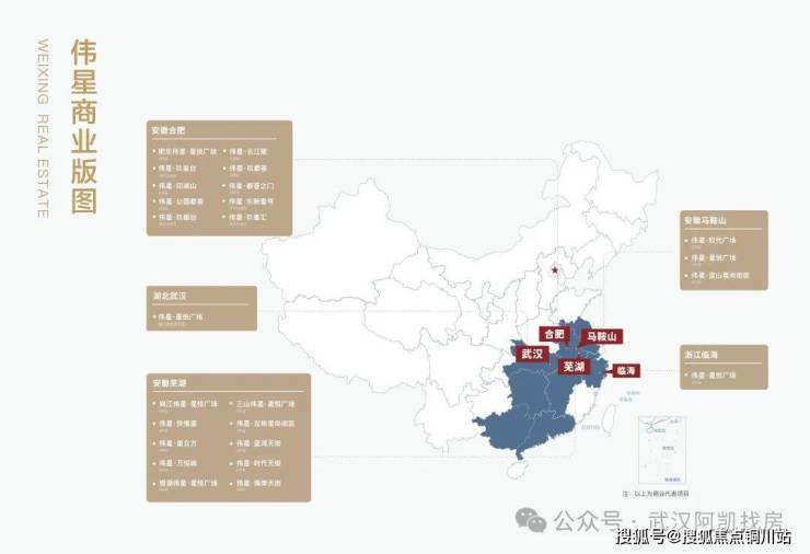伟星商业已布局合肥、武汉、芜湖、马鞍山、临海等重点城市,商业业态涉及综合体、街区、酒店、写字楼、公寓等多种类型,至今已成功运营30个商业项目,220余万㎡。其中 80%商业自持运营,集合 2000+战略合作品牌,实现了房产和商业的双轮驱动。