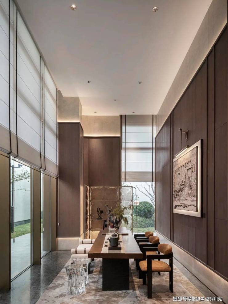 酒店式环岛落客区,藏风纳气的聚宝盆水景,将喧嚣隔绝于外。超70米东方门庭,《千里江山图》照壁,呈现出静谧与美感兼具的中式之美。