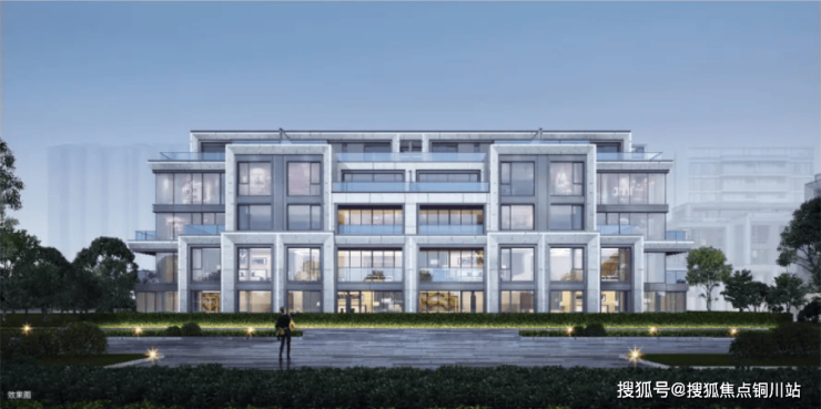 根据效果图,洋房部分外立面整体以大面积玻璃为主,横向铝板/一体板的线条使得立面更加利落、舒展。