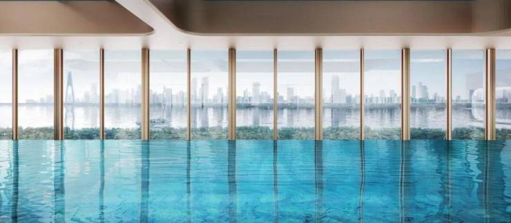 值得一提的是,这里能够满足多元奢华生活需求,既有健身房、私宴厅、SPA空间,也有休闲露台、儿童区,特别是还建有汉口首个无界江景景观游泳池。