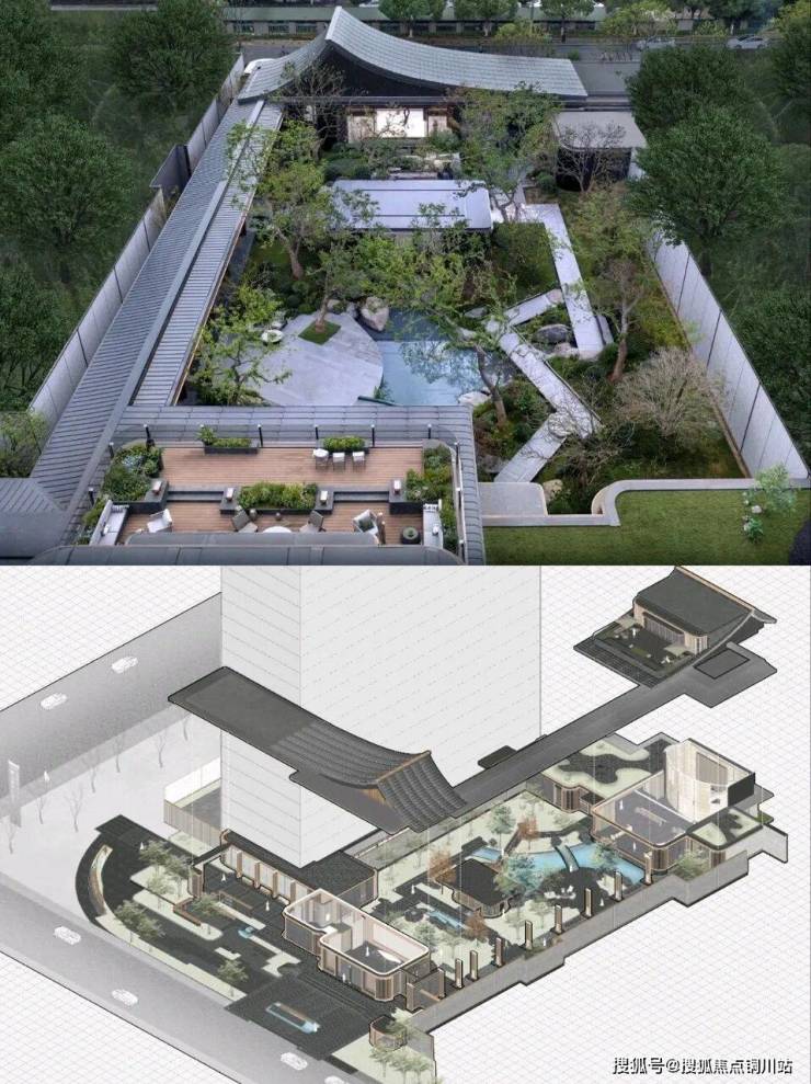 朗云运用人文哲学和自然材料来营造栖居住所,从而在自然的秩序中建立了一套新逻辑、新空间。以往的示范区与住区是独立而割裂的,朗云在苏州打破了这样的规则,将两栋住区建筑安置在示范区的一侧,形成新的对望状态。