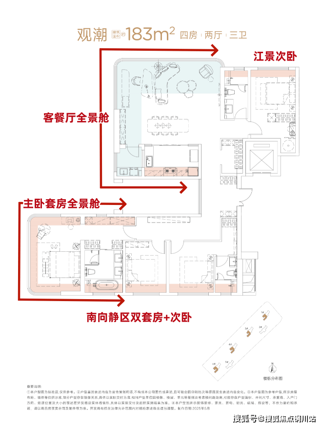 同时每户住宅层高做到约3.05m,每户沿江面均配置全景落地LOW-E玻璃幕墙