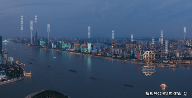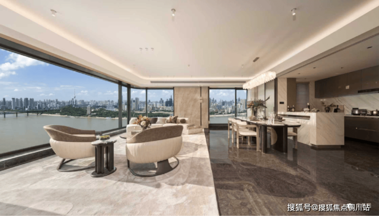 从鎏金玻璃幕墙立面、东方礼序归家动线、长江揽胜园林,到约3000平方米高奢艺术双会所,共同构建了一个融合国际美学、人文意境与全维社交的沉浸式生活系统。