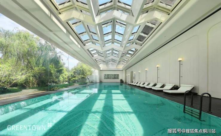 约25米【碧海柔波】恒温泳池,化身“微缩钱塘”。顶部可开合天窗纳星月入怀,无界玻幕拥河入怀。池底马赛克砖铺陈粼粼波光。背景墙《潮影别梦》艺术挂画,漆画螺钿工艺勾连王国维“人生三境”哲思。