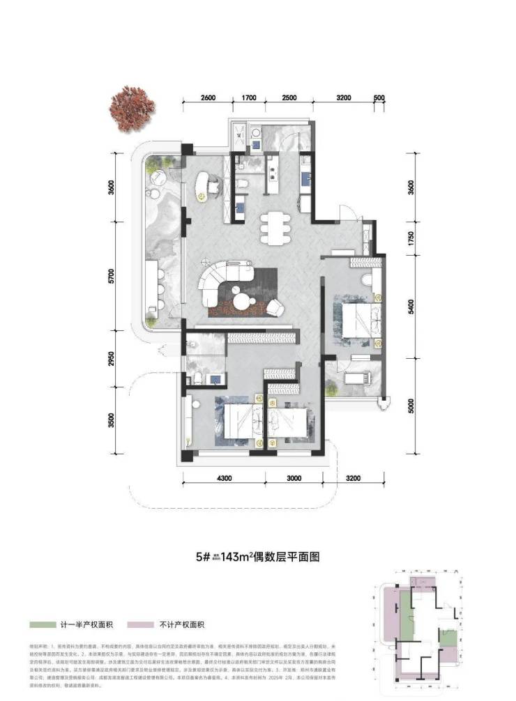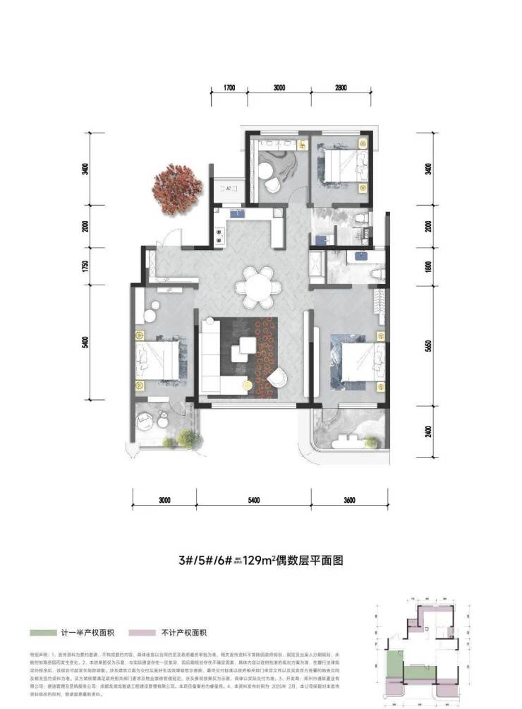 中原颂户型面积段很纯粹,全部四房设计,建面约129㎡和143㎡。129㎡四房得房率105%,套内面积134㎡,相当于市面上常见的建面179㎡的使用空间。建面143㎡的四房,得房率更高,115%,套内面积165㎡,相当于市面上建面220㎡的空间。