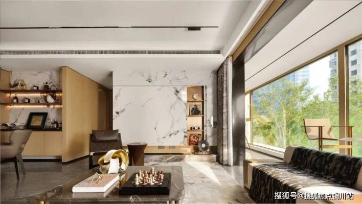 大理石与香槟金铝板线条勾勒出宽敞舒适的入口空间,地库配备星空顶设计,全屋使用一线高端品牌,构造12大精装细节。