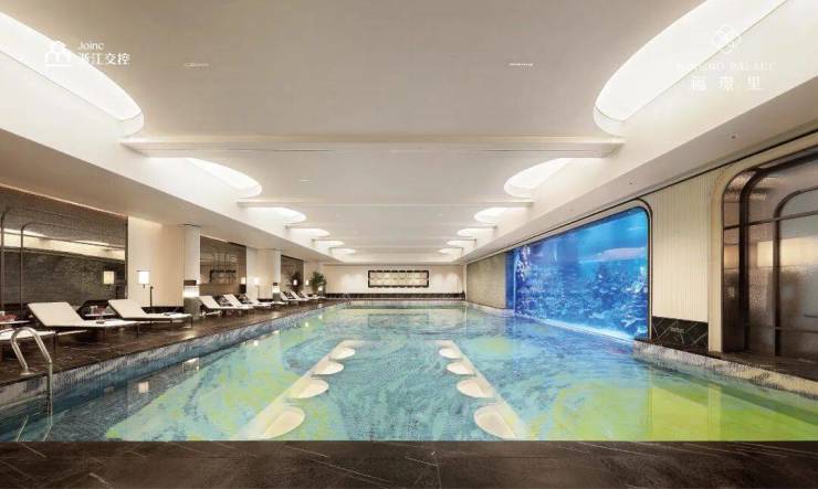 更难得的是,恒温泳池与水族馆无缝衔接,池底以梵高《星空》为灵感,镶嵌艺术马赛克拼图。