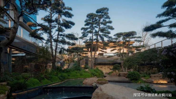 地面之上,绿植、水系与太行金、黄金麻等天然景石错落叠砌,形成步移景异的多维森境。园林在此成为生活的延伸,可闲坐静思,可漫步观水,亦可凭栏俯瞰,每一帧皆是收藏级画面。