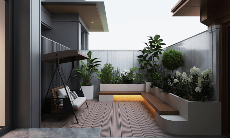 人性化户型设计:所有户型都有地面花园和地下室,中叠和上叠的地下空间不计容,提高了室内使用空间和产品性价比。中上叠均带星空露台,中叠更是罕见地设计了南北双露台,一层南露台与阳台打通成近 7.1 米 ×3 米的超大露台空间,让业主能够充分享受阳光与美景。