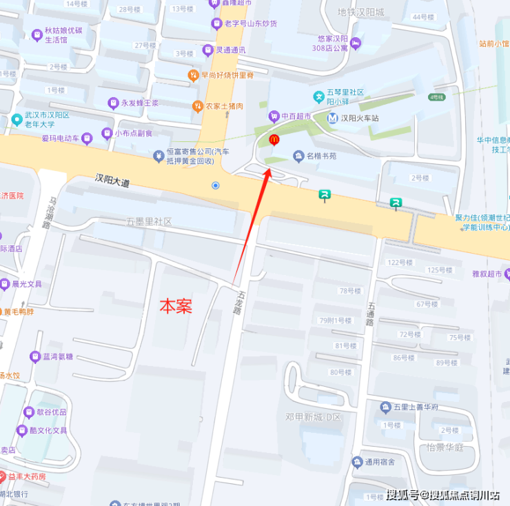 北边是汉阳大道、地铁汉阳城、4号线汉阳火车站等;