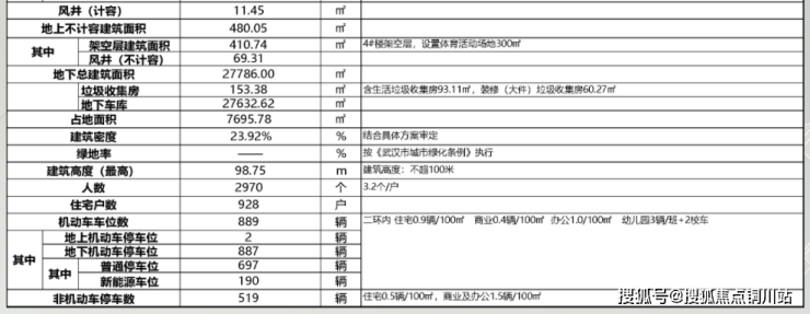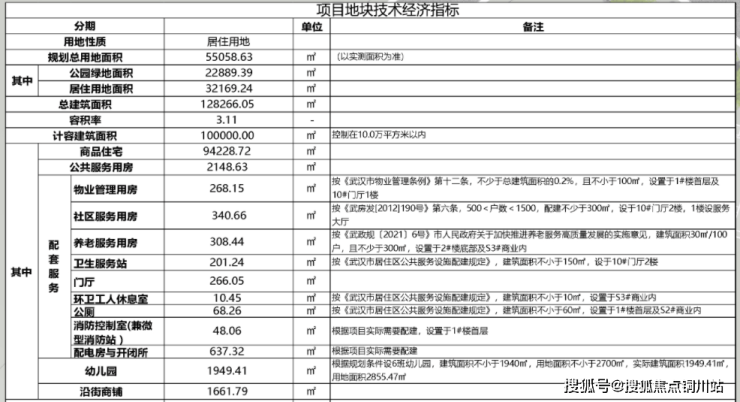 根据规划信息可知,项目总用地面积约5.5万方,总建面约12.8万方,容积率约3.11,商品住宅约9.4万方,住宅总户数928户,地下机动车停车位887个。计算可知,户均建面约101平,车位配比不足1:1,定位偏刚需。