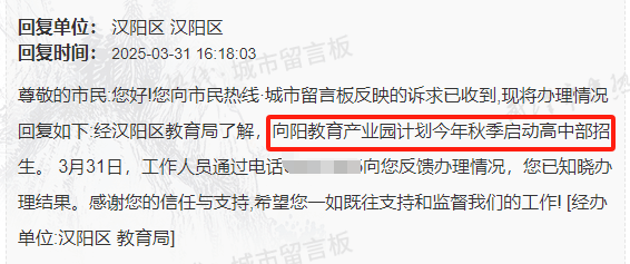 根据官方消息,该学校预计今年秋季开始高中招生。
