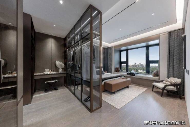 在打造了超大公区后,并没有挤压其他卧室空间,主卧套房尺度豪横,步入式衣帽间,配备独立私密卫浴空间,带来媲美五星级酒店的奢适享受。