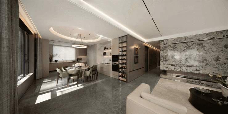 LDKG一体化的设计,实现了大家族聚餐和聚会需要的空间,更核心的是以人为本,未来整个公共空间将构成一个家庭完整的情感交流场所。