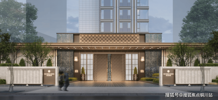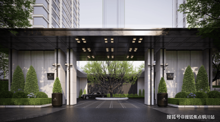 琅誉为3万+豪宅同款公建化立面,大面积运用干挂石材、仿石材铝板、玻璃幕墙、鎏金塔冠等高定材料,简洁大气、线条流畅,对标美国纽约公园凉廊。