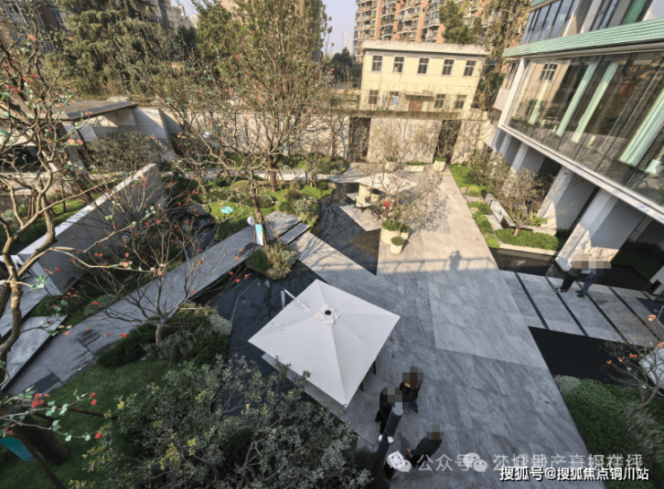 该项目体量不大,算是小而精的楼盘。园林俯瞰有明显的设计感: