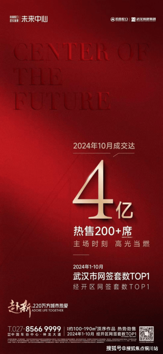 过去2年,招商·武汉城建未来中心在武汉楼市交易市场长期名列前茅;今年1-10月,招商·武汉城建未来中心共卖掉650套,荣膺武汉市网签套数冠军。