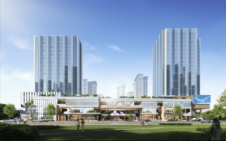 2栋18-19F的酒店和1栋3-4F的商业裙楼位于净慧西道一侧,目前还没有公布具体品牌。