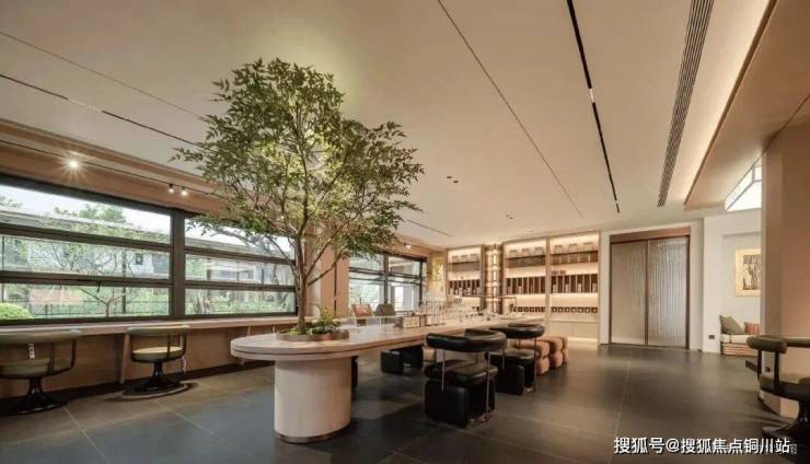 天熠东方部分楼栋还为业主定制了不同的主题架空层。8#的「墨屿书吧」,胡桃木书架围成私密卡座,全景落地窗纳园林入室,窗外是从北京特选的百年文冠树。