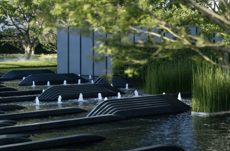 景观设计方面,保利世博天悦采用引江入园、以水带路的手法,将滨江舒阔的国际生活平移到社区内,打造约6万㎡景观秘境,媲美全球奢华酒店。采用大面积的留白和现代禅意的表现手法,呈现开阔舒展的质感。