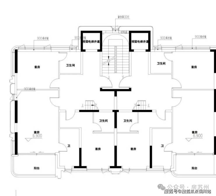 8号楼为3F联排,2-3层平面图如下,2层带阳台,3层带露台,并且打造了全套房设计。