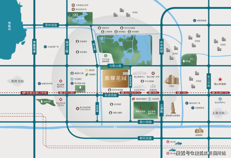 项目距轨道交通11号线昆山文化艺术中心站约480米,快速连接苏州地铁3号线、上海地铁11号线,瞬间连接昆山与上海的精彩。无论是前往上海迪士尼共度童话一日,还是探索昆山老街的江南韵味,鼎耀花园都是你们探索世界的完美起点,让双城生活的浪漫半径无限延伸。