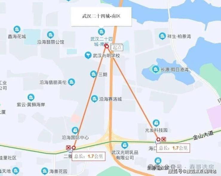 公共交通:周边直线 3km 范围内有 4 个地铁站,分别是二雅路、海口三路、五环体育中心、金银湖公园站,轨道交通较为发达;直线 1km 内有 17 个公交站,距离最近的金北一路张柏路站仅有 122m,公共交通出行极为便捷。