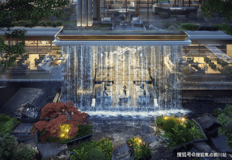 多层立体森林景观,空中的花园亭台、约6米飞瀑,很像溪谷山水、森屿叠翠“穿针引线”成了一幅约1400㎡的云锦图腾