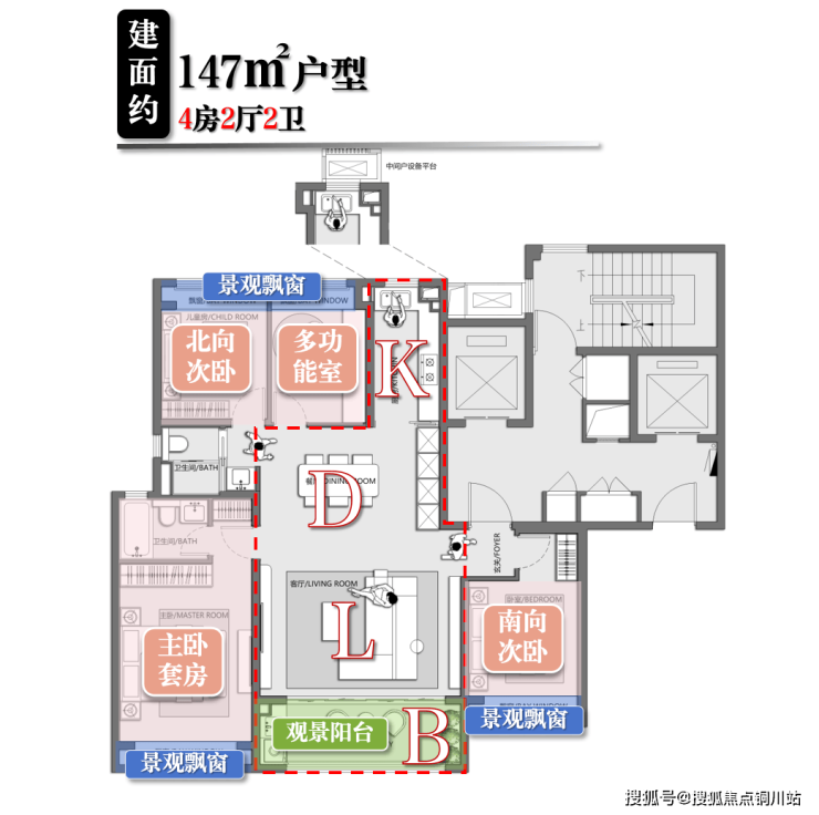 建面约147㎡户型,四房两厅两卫,户型适中,适配各种家庭。