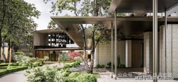 参鉴法国贵族的风雨车马院与中国古建的游廊,设计交融一园胜景的风雨连廊,以风雨止于檐下的关照,塑新新奢归家的场域升华。