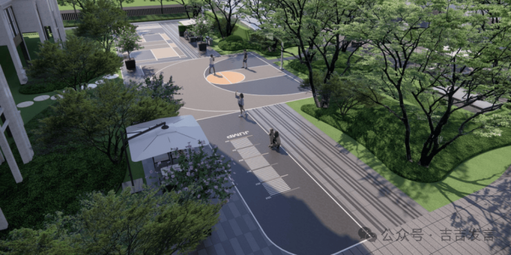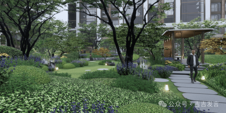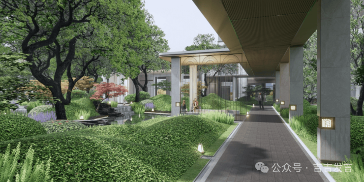 十花园其三:【康养花园】以康养为主题,设置康养花园、林下太极、健身平台等,从社区邻里、生态自然、健康运动等多维度提升居住体验,周边设计观景平台,阳光草坪与组团植物共同营造静谧休闲空间,便于长者交流与家庭户外活动。