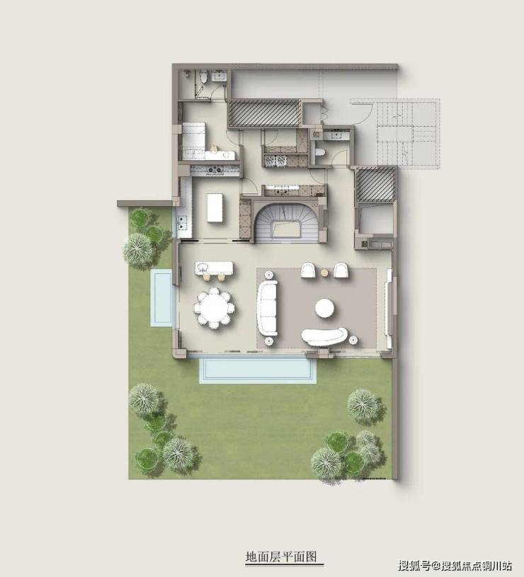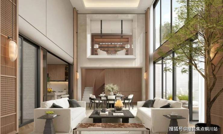 下叠边户享双首层庭院体系:地面层客厅、餐厅、厨房、一层家庭厅等功能空间都可以直接进入到庭院,每一扇窗户开窗即见绿,这种室内外空间的紧密联系是真正的别墅感受。