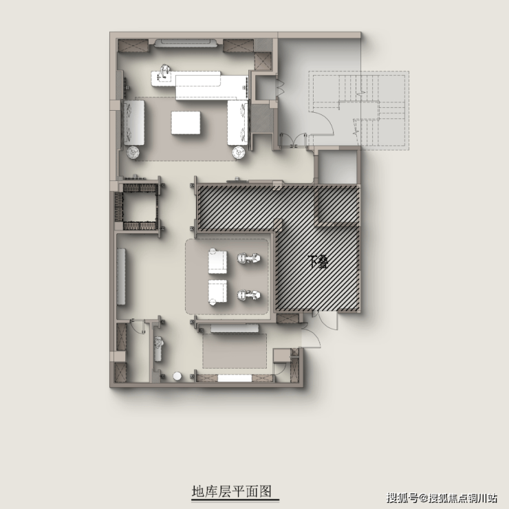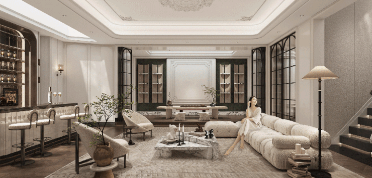上下叠均有分割清晰的独立地下层,这一方天地,不仅仅只有会客宴饮一个功能,主人的任何爱好都有安置之地:不管是雪茄红酒柜、中式茶室亦或是影音区,充满了无限的可能性。