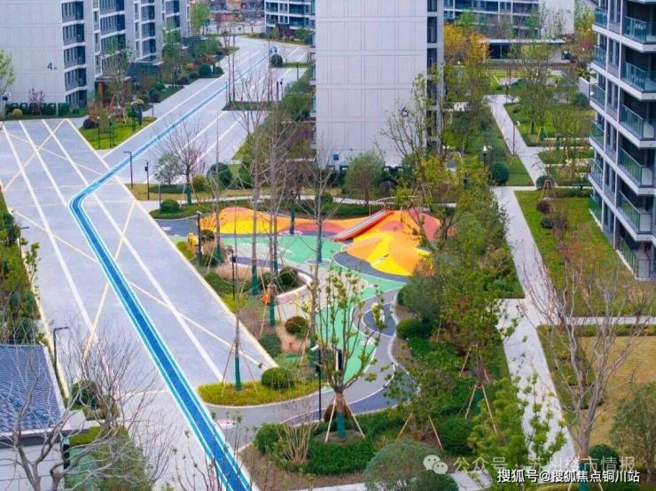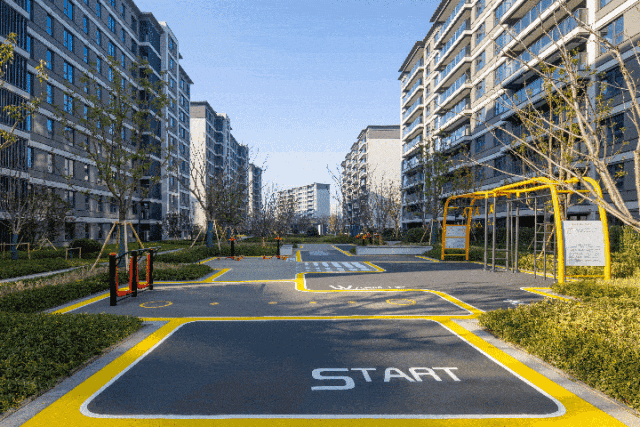 另外,还有林下健身活动场地、颜色鲜明的健身步道,穿越楼层与草坪,成为一道亮丽的风景线。业主们下楼即享健身、跑步的乐趣,舒展身心。