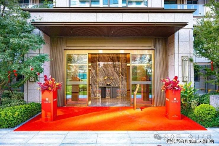 行至单元入口,归家礼序再度升华。门厅两侧对植落叶乔木与常绿乔木,按照星级酒店标准,打造精装双入户大堂,步入其间,尊崇仪式感不彰自显。