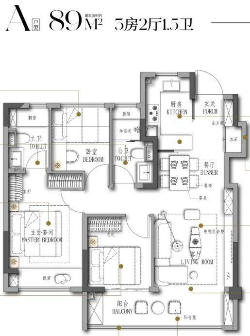 户型设计方面也贴合年轻人的需求,比如89平3房2厅1.5卫,罕见设计89平小户型1.5个卫生间,其中一个卫生间虽然没有淋浴空间,但两个卫生间也免去了一家人早上抢厕所的尴尬。以及S墙、双阳台、X空间、LDKB一体等设计均可提升居住舒适度。