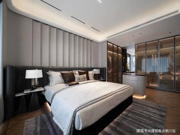 约44.5㎡总统套房主卧,臻享约6.8米的瞰景飘窗,让视野更加开阔,阳光与清风肆意流淌,预留L型漫游式衣帽空间,满足主人对衣物收纳与时尚展示的需求;独立卫浴间匹配双台盆、浴缸,让居者尽情享受私密与奢华。