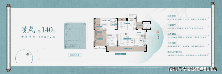 如果说项目118㎡的户型很好的控制了总价和产品,适合首改人群;那么这次约140㎡的户型,就是市区改善群体的优选!
